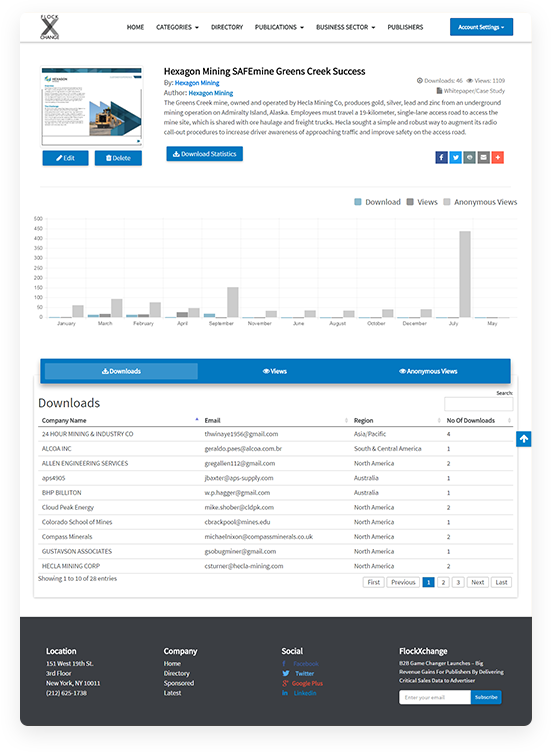 Fig ii) shows http://resources.mining-media.com/ Mining-Media’s ‘private label’ version of the flockXchange platform. Mining Media received free sponsorship on flockXchange.com with their white label license, adding traffic to their advertiser’s content mirrored on flockXchange.com